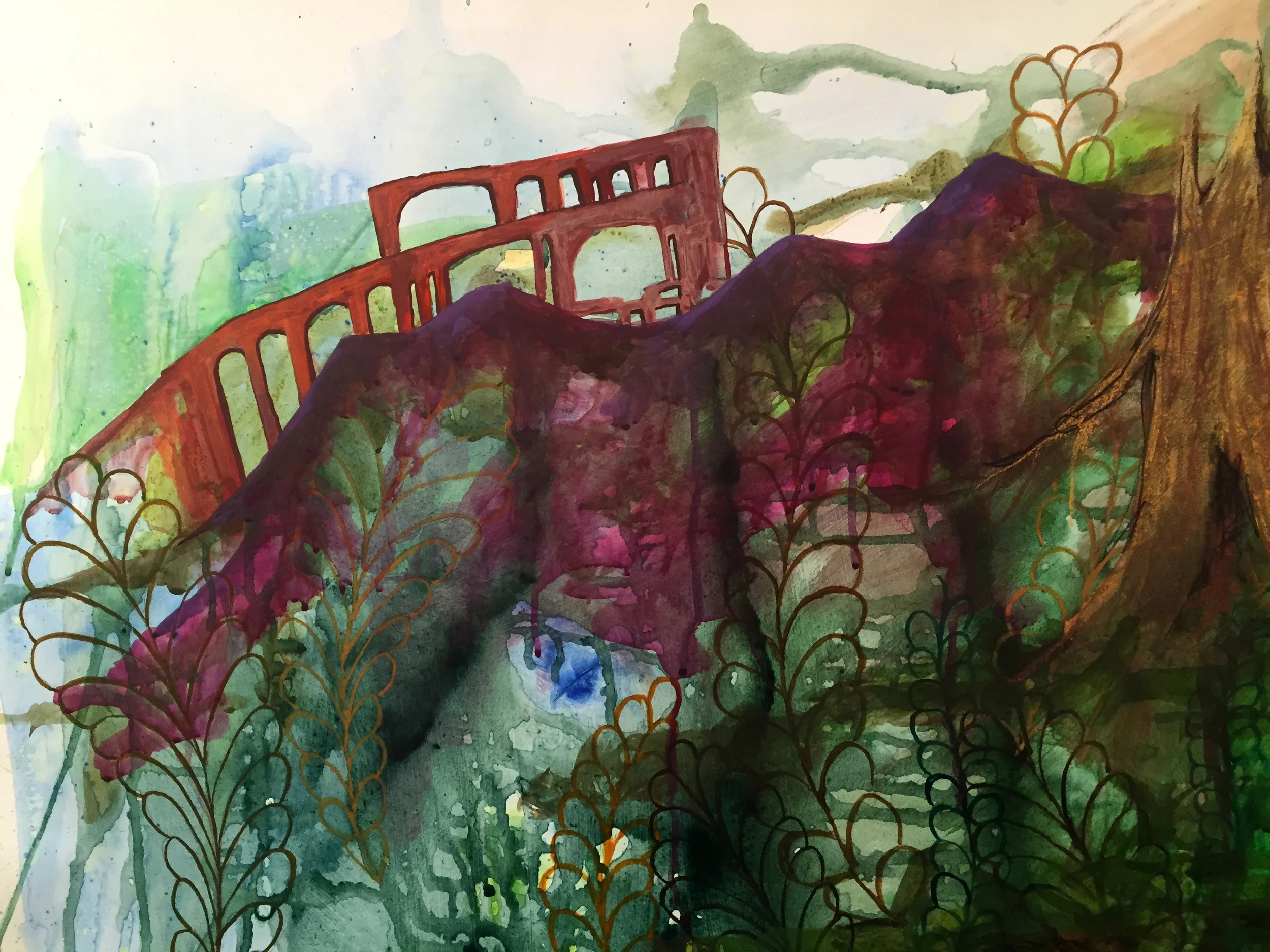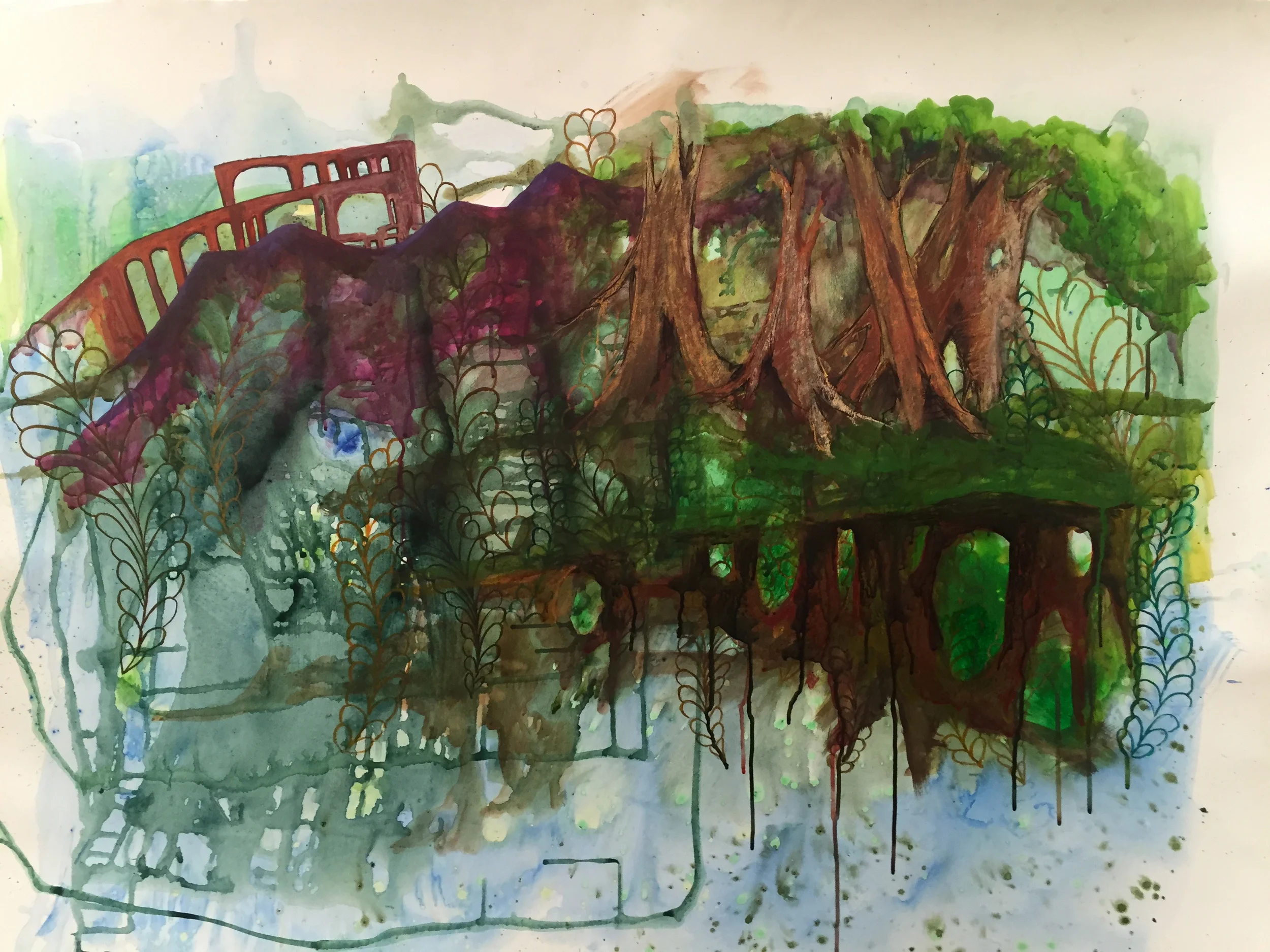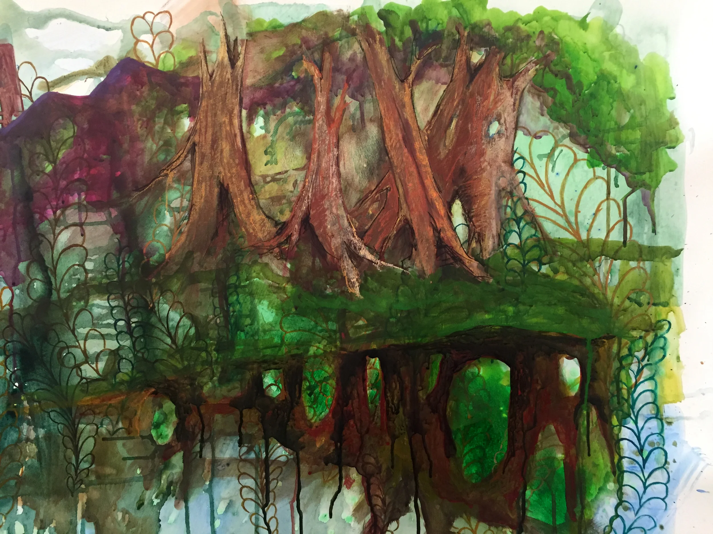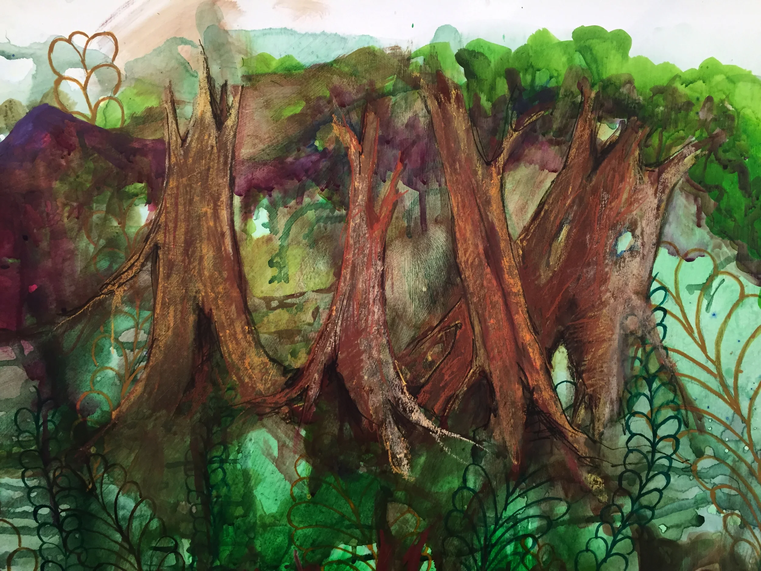 I did waste a bunch of time trying to paint the trees before remembering that I am a terrible painter. So I drew them instead.